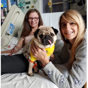 Pets bring so much joy to our lives – coming home and seeing their little furry faces light up is one of the best things, speaking as a true animal lover; and I’m not alone in my beliefs as it’s estimated 44% of households have pets. Though we all think our pets are special, and rightly so, some animals just have that extra special something – and one of those is Alfie the Pug. For those not in the know, Alfie is an adorable six-year-old pug who spends his days (pre-Covid) cuddling, soothing, bringing joy and generally cheering up the poorly children at the Royal Manchester Children’s Hospital. The adorable pup belongs to Suzy Emsden, who introduced herself to me as Alfie’s human, chef, and chauffeur and who tells me the story of how she came to get Alfie. ‘My daughter was very ill at the time and we were always at home. She was obsessed with getting a pug. She’d grown up with black Labradors and I was adamant we weren’t getting one. We see how that turned out!’ Suzy laughs. ‘We found a lovely family who had a litter of pups and we went to see them. When Alfie saw us, he ran up to my daughter, curled up in a ball on her lap and promptly fell asleep – and that was that.’ It wasn’t long before Suzy began to notice that Alfie had a very calm demeanour and an intuitive sense of empathy that was perfect for a therapy pet. ‘We saw quite early on that Alfie had a sense on whether people wanted to be bothered or whether they needed somebody lying next to them. We saw the difference he could make with one person, so we thought it would be a shame not to share it.’