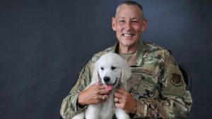 The 10-week-old is a therapy dog in training for the 185th care team and was requested by Iowa Air National Guard Lt. Col Steve Peters.