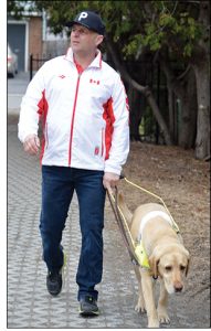 Orléans blind, death athlete Kevin Frost has been making do the best he can with daily workouts in his basement that include a 50-minute ride on his bike trainer. He also goes for walks ever day with his service dog Louis.