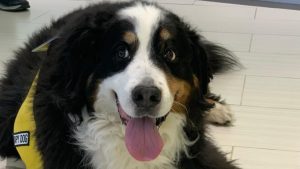 She is a 10-year-old Burnese Mountain Dog who has worked as a therapy dog at both the Upstate Cancer Center and at the Joslin Diabetes Center.