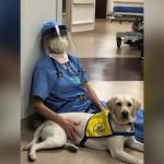 A service dog in training brings comfort to ER doctors on the frontlines