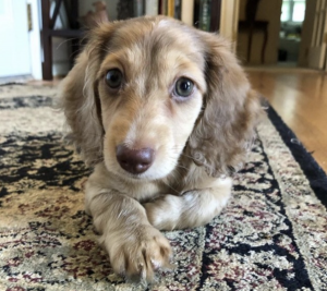 “We had lost our first dachshund Tommy a year ago and thought that we could never get another dog,” says mom Glynnis. “But then when the pandemic lockdown kept us indoors so long and all the news was so grim, a collective sadness swept the whole family. My two daughters had their college years cut short by the pandemic on two pivotal years for them. A Senior at Colgate University whose graduation could not happen. And a freshman at Cornell who was enjoying her first Spring semester.”