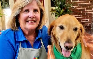 When experienced pet handler Linda Dunn moved to Jacksonville, she approached numerous hospitals about starting a pet therapy program. When she shared this vision with Wolfson Children’s Hospital leaders, they saw it as an innovative way to improve patients’ experiences. Dunn promptly joined the Wolfson Children’s Auxiliary, established the program, and made the hospital’s first pet therapy visit in May 1995 with her Labrador retriever, Jenni.
