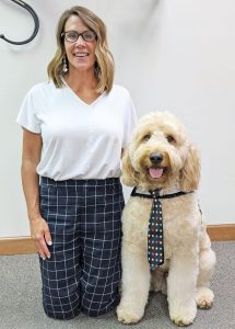 Chewie may soon be expanding his services even further. Recently Gage and Chewie crossed paths with a Derby High School SRO officer, and the officer recognized Chewie and asked for his business card. Chewie might help at the high school with some of the higher-anxiety students.