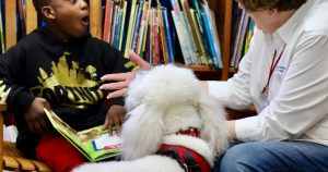 Several studies, as well as anecdotal evidence, shows significant improvement in young children’s reading skills when they read out loud to animals. In the past, that’s been done in person. But Perkins says the coronavirus has made the interaction electronic.