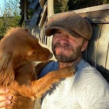 The England legend, 45, was showered with kisses from Cocker Spaniel Sage, as he shared photos with the family’s two older dogs Olive and Fig.