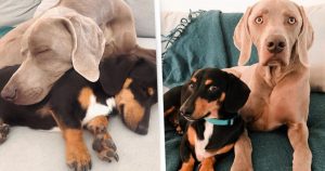 “The bond these two dogs have is just insanely beautiful,” Manalis told Caters News. “They are so connected and loving and supportive of one another. If one ever cries, the other one is there in half a second to check they are OK. Their love is unconditional, regardless of their size or breed.”