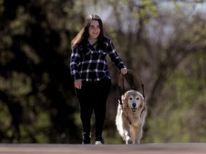 Today, according to the Americans With Disabilities Act, service dogs are defined as having been “individually trained to do work or perform tasks for an individual with a disability.” This includes everything from mobility dogs to hearing dogs to seizure alert dogs to peanut-sniffing dogs for those with allergies. Some service dogs steady their clients and help them get up stairs. Some work with people affected by post-traumatic stress disorder. Some even learn how to detect abnormal blood sugar levels. “I get people all the time that will be like, ‘Oh, it’d be really cool if my dog would bring me a bottle of water,’” said Kevin Hill, the executive director of St. Louis Huggs, a local training organization. “But I’m like, you don’t have any mobility issues, you’re not training your dog to be your assistant or your servant. This needs to be based on a disabled-related need.” Trained service dogs go beyond what you may think of. Many St. Louis-based organizations produce dogs that comfort patients in a hospital or lie next to sexual assault survivors as they testify in a courtroom. Regardless of the role they perform, these working dogs require two years of extensive training. They must learn all kinds of simple and intricate commands. They spend days practicing at the zoo, the airport or maybe an art fair. These dogs are workers who save lives in many cases, and here are a few of their stories.