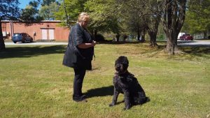 Kim Bolan is a volunteer who fosters dogs before their service training.  She’s working with Kylo.