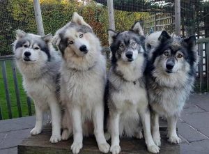 “The dogs each have a speciality,” says Adrian, who launched Therapy Huskies three years ago, after delivering all three dogs six years ago, and falling instantly in love with them.
