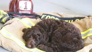 The Australian Labradoodle joined the fire department this summer to enhance the agency’s outreach program. Once fully trained, Hallie will be used to teach children about fire safety and also serve as a emotional support animal for fire department employees.