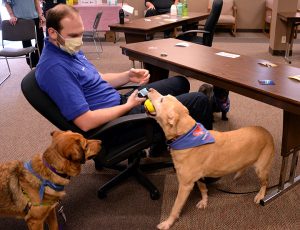 “They say everyone’s blood pressure drops when you pet dogs, so, if nothing else, we’re providing them a break from the day,” he said.