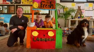 Mr Brown said Lilly also helped the children test their new ideas and the gentle giant worked at a lemonade stand the children designed earlier in the week.