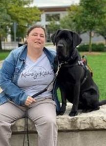 “Kanyon provides me with my independence and makes me feel safe. I would not go back to a white cane because when I am out and about with my dog, it’s so much easier.”