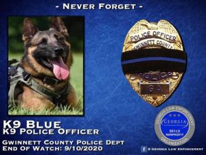 Donations in Blue’s name can be made to the Georgia Police K9 Foundation, which raises money to buy protective equipment for police dogs.