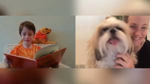 Now children are practicing reading virtually. Sessions start with introductions involving the entire group. Then each child goes into a virtual breakout room and reads to a therapy dog and their handler. After about 12 minutes, they switch and read to another dog.
