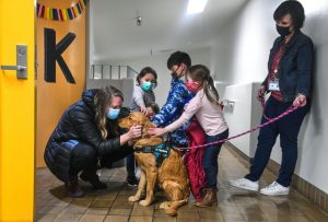 Lucy spreads joy without trying. One day she was off her leash and wandered into the Regal day camp, where a handful of older students can engage in distance learning while their parents are working.