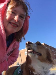 Every afternoon along Fairview Avenue, past the Manassas Police Department headquarters, and into Downtown, Sandy O’Bannon walks her dog, Indiana while wearing a pink bunny suit.