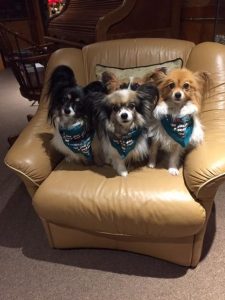 The three tiny Papillons, owned by resident Jo-Edith Heffron, miss working with the patients at Good Shepherd Continuing Care and seem eager to return.