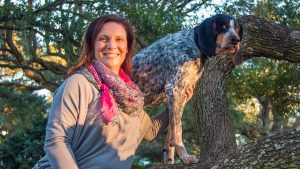 Though she’s known for her love of dogs and her commitment to rescuing animals of all kinds, from birds to cats to, just last week, an injured pelican on the Interstate Highway 10 Bayway, Greene didn’t grow up with dogs. In fact, she’d never had one until she moved to Mobile, where she knew no one. She found Charles, a hound mix, at a rescue event, where, as the dogs around him barked and growled, he looked at her casually, paws crossed, “like, ‘Greetings,’” she said. They’ve been inseparable ever since.