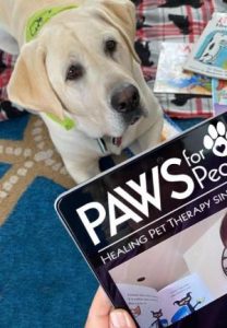 To help children continue to build their reading skills, PAWS for Reading, in conjunction with partnering libraries, is holding virtual reading sessions. Through a preset Zoom meeting at one of the libraries, children take turns reading to a therapy dog. Kids love it, and reading becomes a lot more enjoyable.