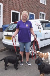 When dog walking, Miss Eaton will arrive to pick up or return dogs from clients’ gardens, using her own leads and personal protective equipment.