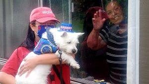 On Sunday, seniors at the Heritage Court Assisted Living Center received a visit from Pet Prescription. Instead of bringing the dogs inside the building, they held them up at the windows.