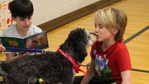 This surprise has four fuzzy legs and a furry wagging tail, and she can’t wait to meet the students.