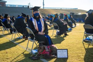Mona, a Labradoodle, became the first canine companion in UWG history to receive an honorary “dog-ree” during in-person Commencement ceremonies that honored all members of the class of 2020 – human or otherwise.