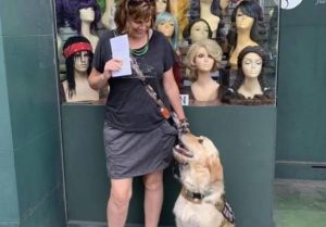 “I have had my current Service Dog for nearly a year. Bailey is a 1.5-year-old Labradoodle,” said Grotberg. “He is still in training. This stage is known as SDiT, Service Dog in Training. In NC, SDiT have the same public access rights as Service Dogs. Puppy training, Obedience Training, Public Access Training, how to behave anywhere and everywhere, from the mall to a restaurant, and Task Training, the actual work the dog will perform to mitigate the disability of handler, are all part of the dog becoming a service dog.”