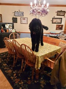 St. Marys Area School District’s future therapy dog, a black Goldendoodle named Brookyln, is about halfway through her training with the New Hope Assistance Dogs organization.