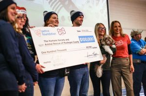 On Friday, Dec. 6, representatives from the Petco Foundation surprised students gathered at a special assembly at Reeths-Puffer Elementary School to present the grand prize in their annual Holiday Wishes program. The students won the award that will be given to the Humane Society and Animal Rescue of Muskegon County.