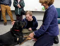 She said when Cayden is having a meltdown, the dogs go right over to him and comfort him. She said the dogs help him have more focus, responsibility and independence.