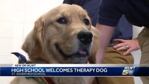 The 2-year-old golden retriever is the school’s new therapy dog.