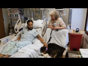 He has been an inpatient at UW Medical Center, awaiting a donor heart for transplant. While the experience has been difficult at times, he says a program called Paws for Patients has provided much-needed emotional support. Program volunteers bring registered therapy dogs to visit patients who face challenging medical conditions.