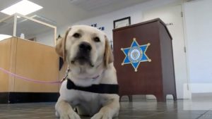 The 1-year-old English lab is specially trained to help provide comfort to those in need, according to Sheriff Peter J Koutoujian.