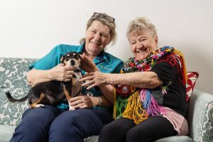 After Carinity Cedarbrook Diversional Therapist Julianne Staff adopted Stanley, he began visiting the aged care community at Mudgeeraba as a therapy dog. Therapy dogs help to reduce anxiety and stress and provide companionship for people of all ages. Stanley brings much joy and pleasure to the men and women living at Carinity Cedarbrook, including going for outside walks with residents and their visiting family members.