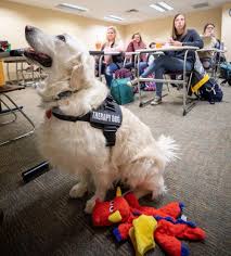 Sara Gillespie, a senior nursing student in Riddle’s class, said Jake’s presence is a comfort when discussing heavier topics.
