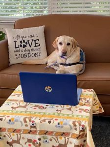 Jordon the 5-year-old Lab is one of the many therapy dogs that continues to work virtually. She usually goes to the Kids House in Seminole County, Florida, where she helps abused and neglected children. She knows that those kids still need her during this time of crisis.