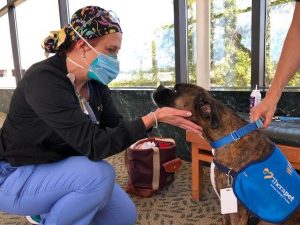 “Nowadays it’s really stressful, so it’s great to see dogs,” said Ashley Meador, occupational therapy assistant, as she stopped to pet one of the therapy dogs after her shift ended. “I really want a dog, so it made all the difference.”