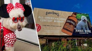The 3-year-old dog participated in a photoshoot with other All-American dogs from across the country, and her picture will be featured in the Early Times 2021 All-American Dogs calendar later this fall. On Monday, a billboard featuring Annie Rose was also revealed in Cincinnati on Interstate 75 near Dayton Street.