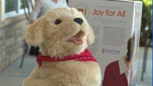 The “Snoopy” she’s referring to is a robotic dog made by Joy for All, a company that makes realistic therapy dogs and cats specifically designed for memory-care patients to provide social engagement and decrease loneliness.