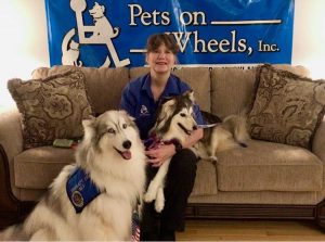 Pets on Wheels is a nonprofit which matches facilities in Maryland with volunteer pet therapy teams, free of charge. Most visits are made to residents in nursing homes, assisted living communities, hospitals and facilities for the physically and mentally challenged, but the group also services schools and libraries and responds to stressful situations within communities.
